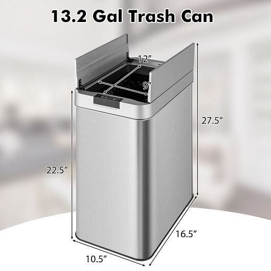 13.2 Gal Slim Kitchen Trash Can with Wing Lids and Stainless Steel Frame