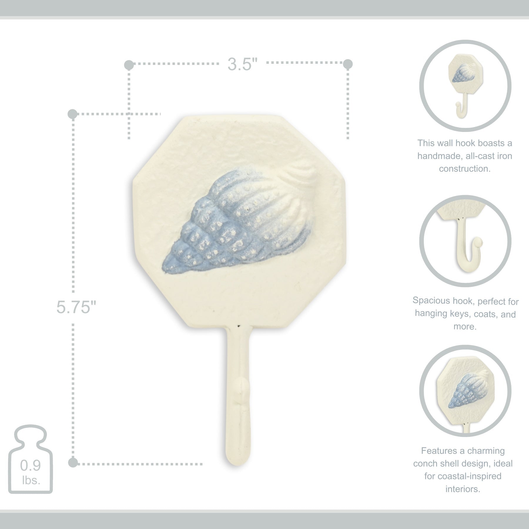 4" Blue And Cream Cast Iron Conch Shell Wall Hook